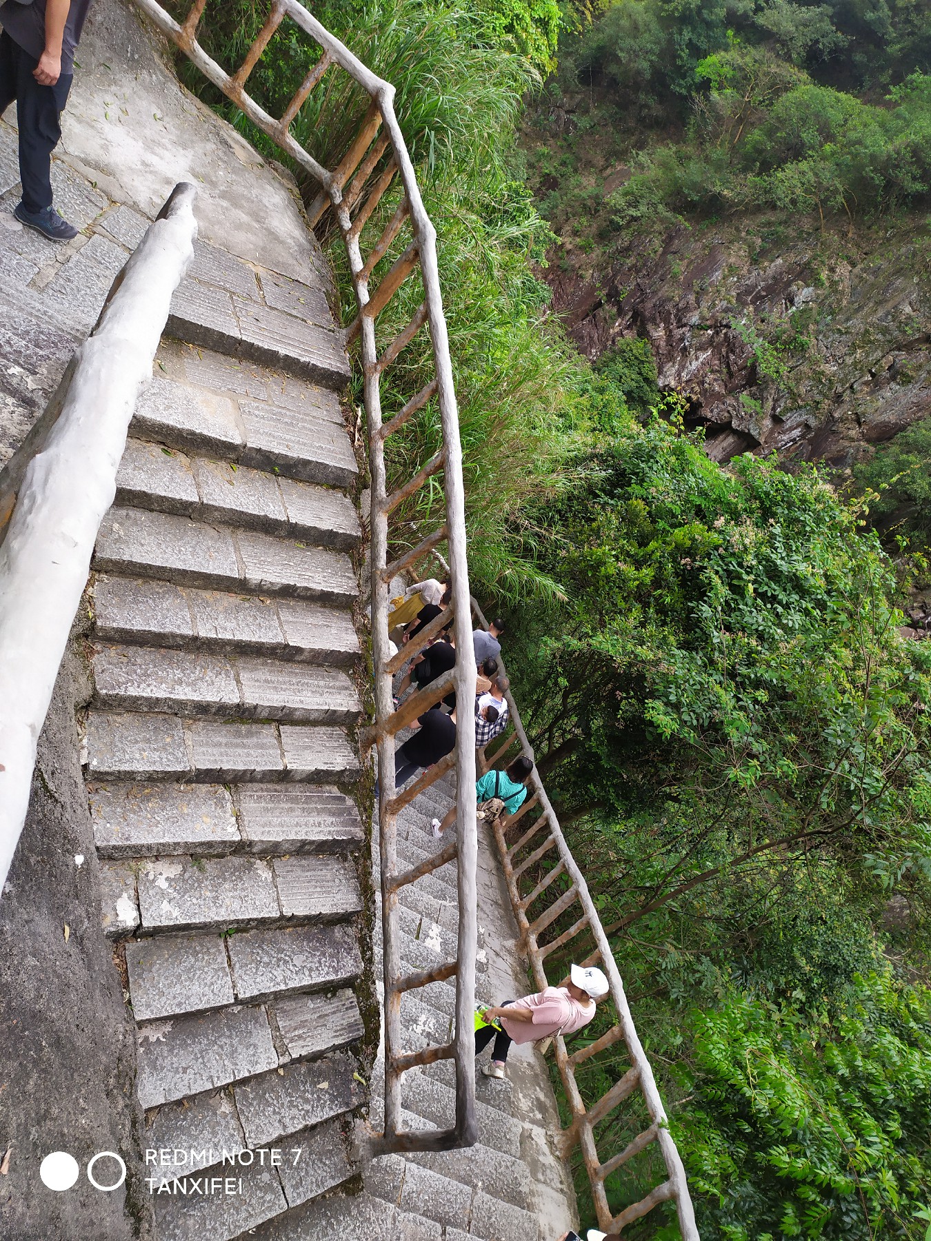大概爬到2300级左右,后面的路程就很难看到瀑布了,路上几乎没有观景点,人也开始变少。我们一鼓作气到达3699级,离4099仅400级。此时时间为12:07,加上我们中途休息的时间大概需要2.2小时。